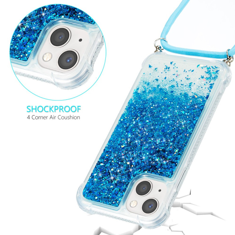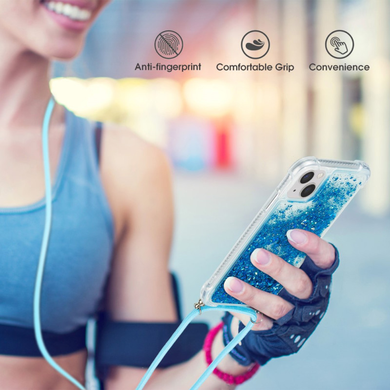 Deze glittercase wordt geleverd met een trekkoord om je iPhone 15 Plus naar wens te beschermen en te dragen.