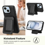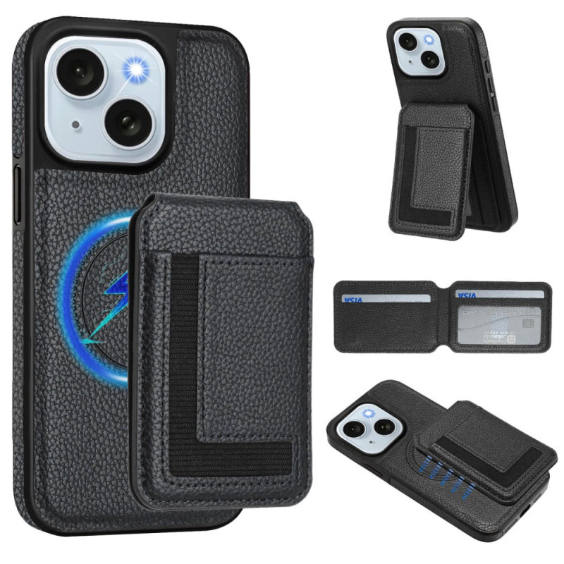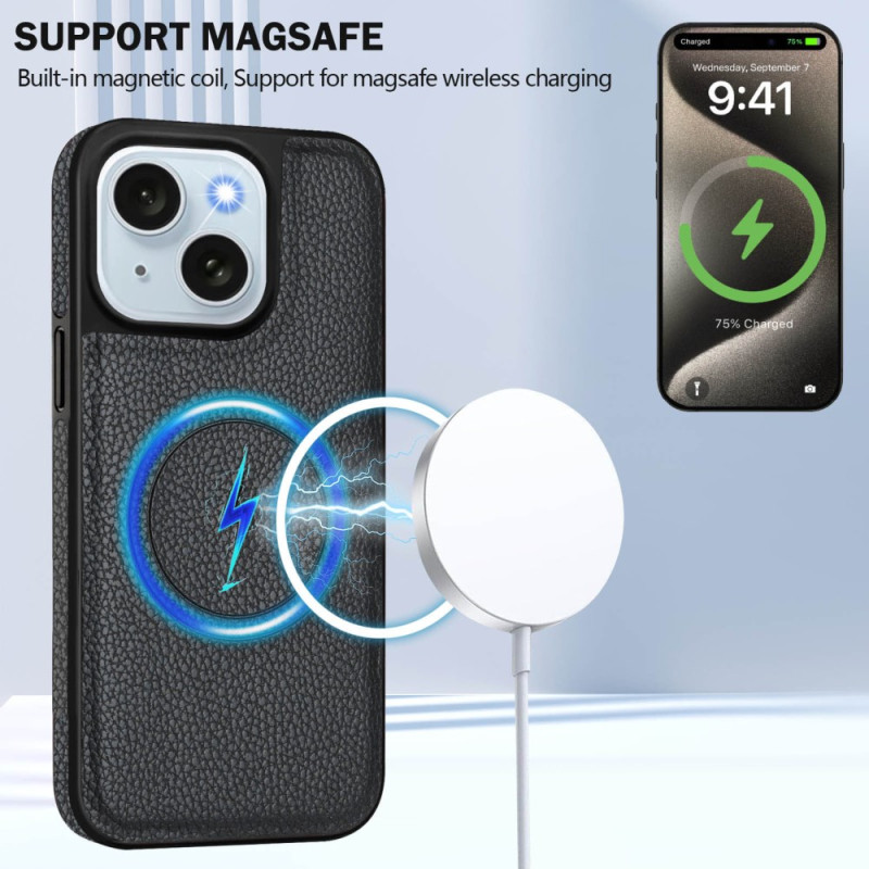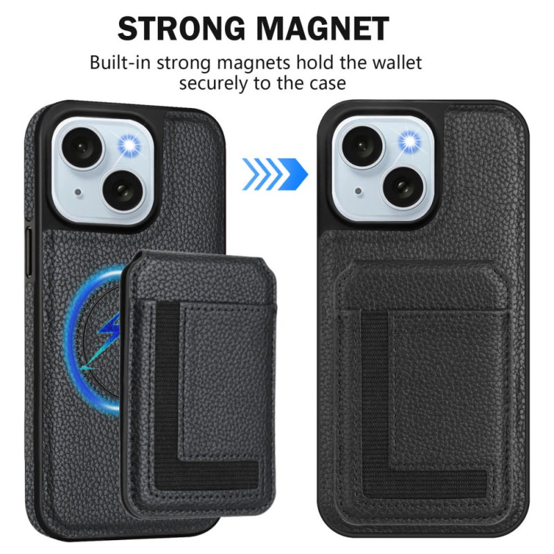 Ontdek onze innovatieve magnetische hoes voor iPhone 15 Plus. Hij combineert elegantie en functionaliteit en biedt eersteklas PU-leer en TPU-bescherming, een afneembare kaarthouder voor maximaal 3 pasjes en MagSafe-compatibiliteit voor handig draadloos opladen. Het veelzijdige ontwerp bevat een geïntegreerde standaard voor handsfree kijken en een magnetische houder voor in de auto.