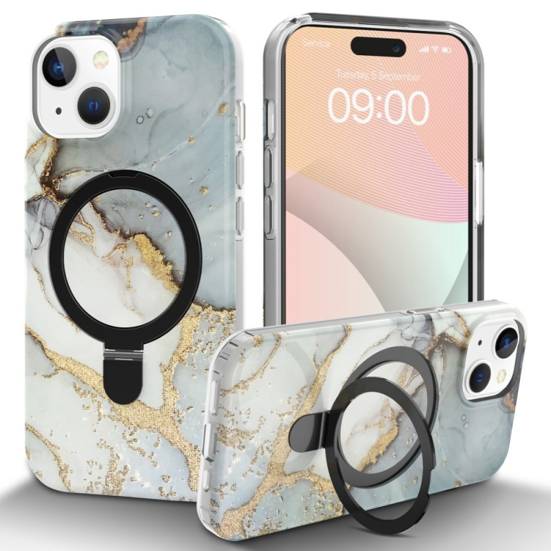 Ontdek onze elegante en functionele hoes voor iPhone 15 Plus. Hij combineert duurzaamheid en stijl en biedt volledige bescherming met een trendy marmeren patroon. De geïntegreerde standaard en MagSafe-compatibiliteit verbeteren je dagelijkse ervaring.