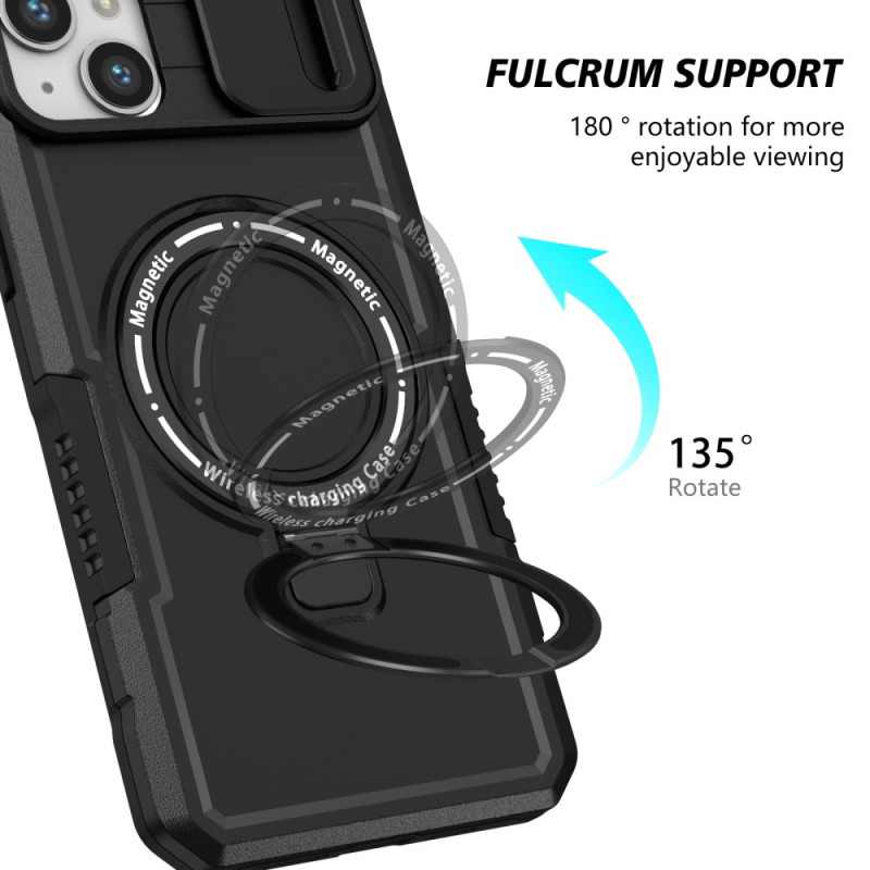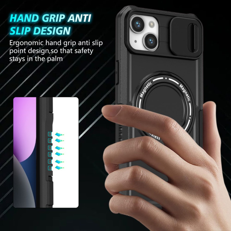 Ontdek onze innovatieve beschermhoes voor iPhone 15 Plus. Met een praktische kickstand, bescherming van de schuiflens en MagSafe-compatibiliteit biedt hij bescherming op militaire schaal tegen schokken en maakt hij draadloos opladen mogelijk. Ideaal om video's te bekijken en gemakkelijker vast te houden.