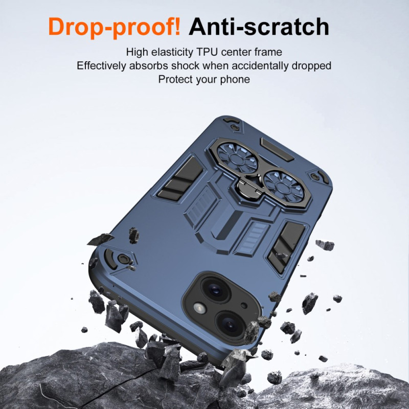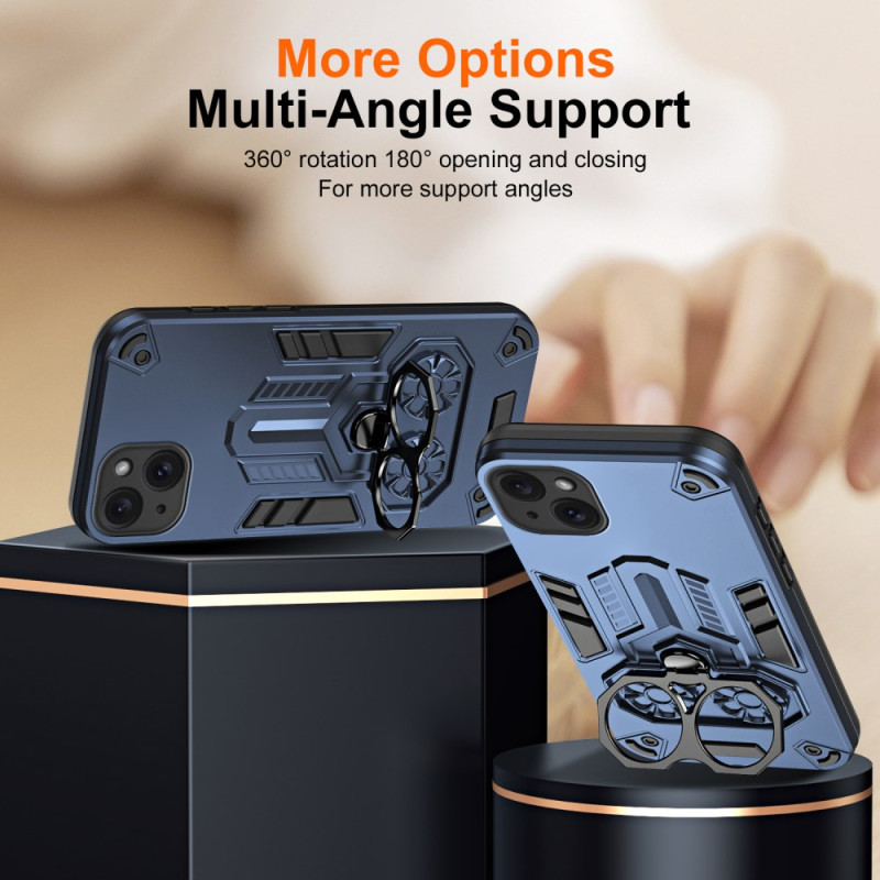 Ontdek onze robuuste hoes voor iPhone 15 Plus, die bescherming en functionaliteit combineert. Met een veelzijdige ringsteun biedt hij volledige bescherming tegen stoten en krassen, terwijl je hem vanuit verschillende hoeken kunt bekijken. Ideaal voor videogesprekken, gamen of streamen.