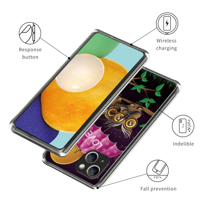 Ontdek ons prachtig ontworpen iPhone 15 Plus hoesje met een charmant uilenpaar. Deze flexibele TPU case combineert stijl en bescherming, absorbeert schokken, is bestand tegen krassen en biedt een comfortabele grip. Het unieke patroon vervaagt niet en de transparante randen vergelen niet na verloop van tijd. Geniet van eenvoudige installatie en betrouwbare bescherming voor je kostbare apparaat.