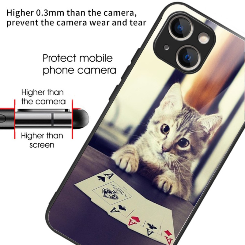 Ontdek onze innovatieve beschermhoes voor de iPhone 15 Plus. Hij combineert een zachte TPU-rand met een achterkant van gehard glas en biedt meerlaagse bescherming tegen vallen en krassen. Het kenmerkende kattenpatroon voegt een vleugje stijl toe aan je toestel. Met een 0,3 mm verhoogde rand om de cameralens te beschermen en verstevigde 360 graden bescherming combineert deze hoes bescherming en design.