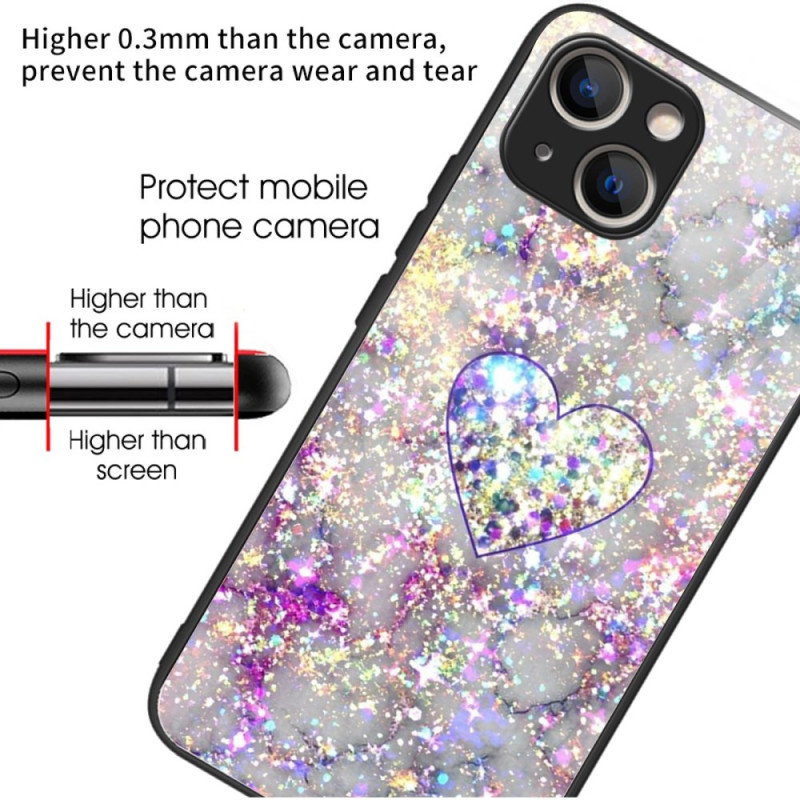 Ontdek onze elegante beschermhoes voor de iPhone 15 Plus, die stijl en veiligheid combineert. Met zijn ontwerp van gehard glas en zachte TPU-randen biedt hij meerlaagse bescherming tegen vallen en krassen. Het glanzende hartmotief voegt een vleugje verfijning toe aan je toestel. Geniet van 360-graden bescherming met een verhoogde rand voor de cameralens en eenvoudige toegang tot alle poorten.