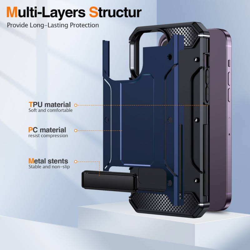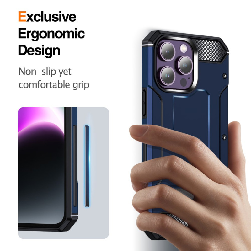 Bescherm je iPhone 15 Pro Max met deze ultrabestendige hoes met praktische verwijderbare standaard voor handsfree gebruik.