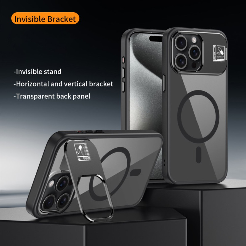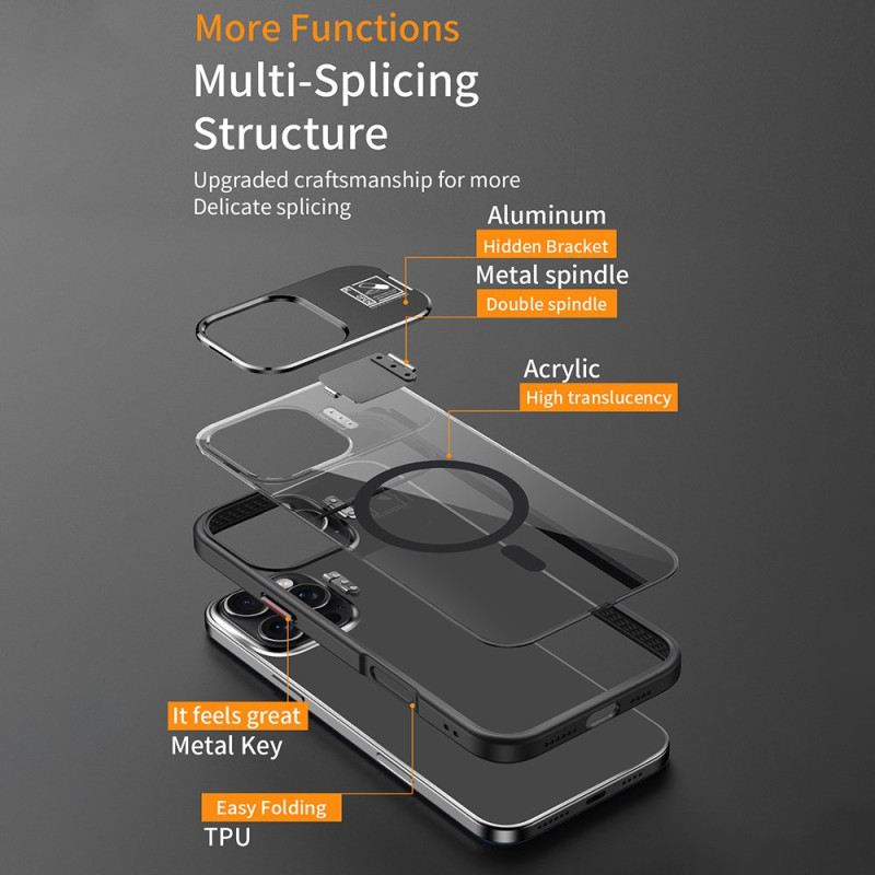 Ontdek onze innovatieve beschermhoes voor iPhone 15 Pro Max. Het combineert duurzaamheid en functionaliteit en biedt robuuste bescherming dankzij het flexibele TPU en het heldere acryl achterpaneel. De geïntegreerde kickstand en MagSafe-compatibiliteit maken het een veelzijdig en praktisch accessoire voor je dagelijks leven.