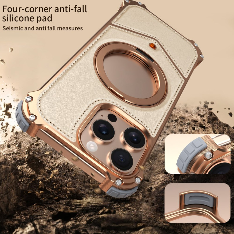Ontdek onze elegante hoes voor iPhone 15 Pro Max. Met een randloos ontwerp van aluminiumlegering bedekt met PU leer, biedt het een minimalistische en duurzame esthetiek. Dankzij de 360° draaibare houder kun je hem gemakkelijk handsfree gebruiken. Luchtkussenbescherming op de hoeken en versterkte magnetische compatibiliteit zorgen voor optimale veiligheid en efficiënt draadloos opladen.