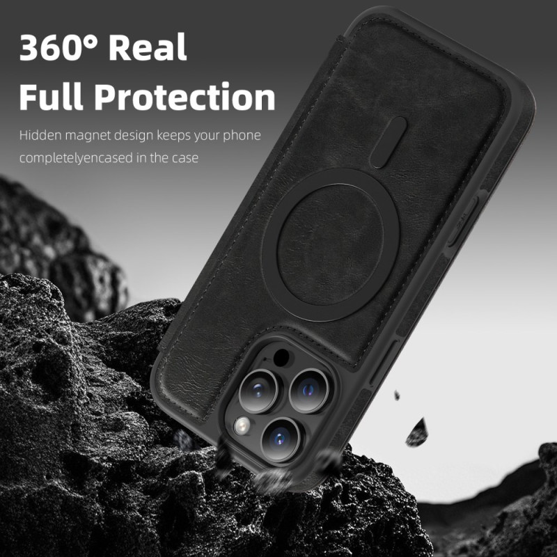 Ontdek onze stijlvolle en functionele hoes voor iPhone 15 Pro Max. MagSafe-compatibiliteit, geïntegreerde kaarthouder en RFID-blokkeringstechnologie voor optimale bescherming. Gemaakt van TPU en PU leer van hoge kwaliteit, biedt het duurzaamheid en stijl terwijl het je apparaat beschermt tegen krassen en stoten.