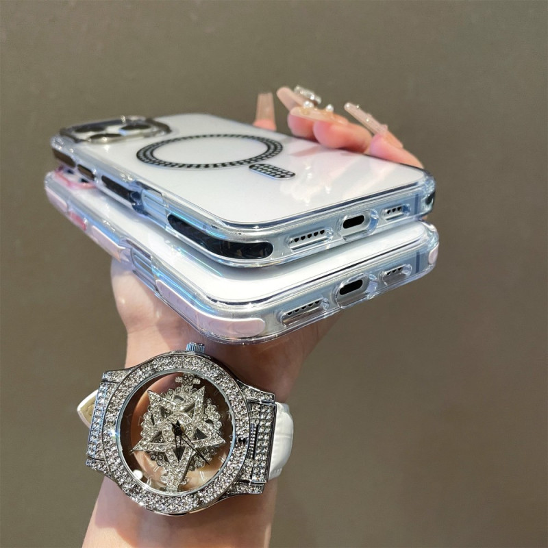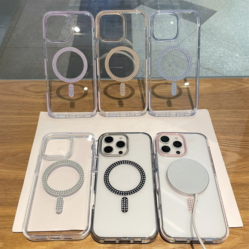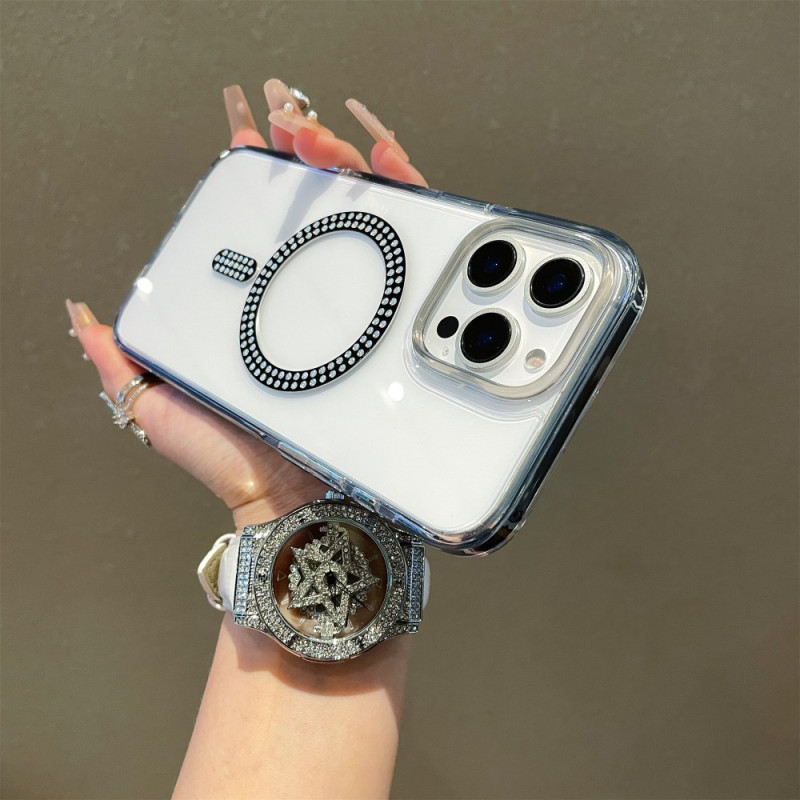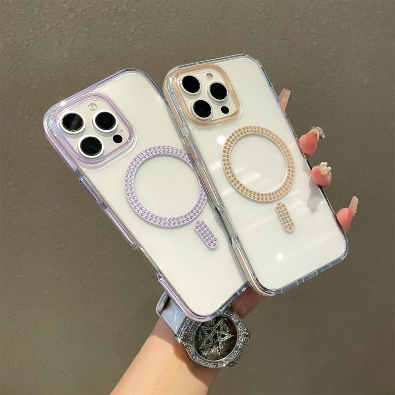 Ontdek onze elegante case voor iPhone 15 Pro Max, die robuuste bescherming combineert met verfijnde stijl. Hij is compatibel met MagSafe en biedt optimale veiligheid dankzij de hybride PC + TPU-structuur. De strassteentjes voegen een vleugje glamour toe, terwijl de versterkte randen en precieze openingen zorgen voor perfecte functionaliteit.