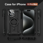 Ontdek onze robuuste magnetische hoes voor iPhone 15 Pro Max. Met schokbescherming van militaire kwaliteit, een verstelbare metalen standaard en MagSafe-compatibiliteit biedt hij optimale bescherming en uitzonderlijke functionaliteit. Geniet van een verbeterde gebruikerservaring dankzij de innovatieve functies.