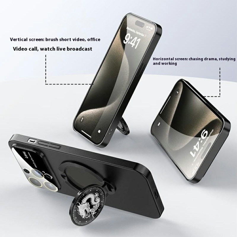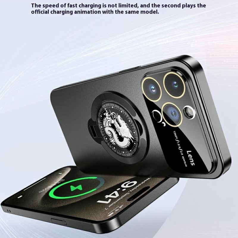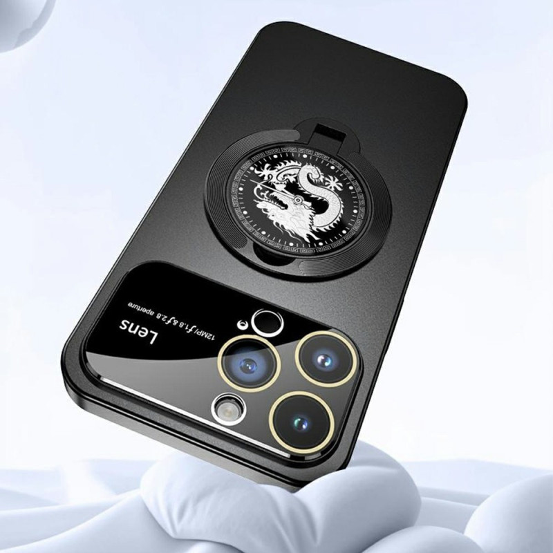 Ontdek onze elegante hoes voor iPhone 15 Pro Max, die bescherming en stijl combineert. Met zijn gegraveerde drakenmotief, geïntegreerde magnetische houder en MagSafe-compatibiliteit biedt hij de ultieme gebruikerservaring. De robuuste pc-constructie en antikrascoating zorgen voor duurzaamheid en een mooi uiterlijk.