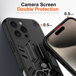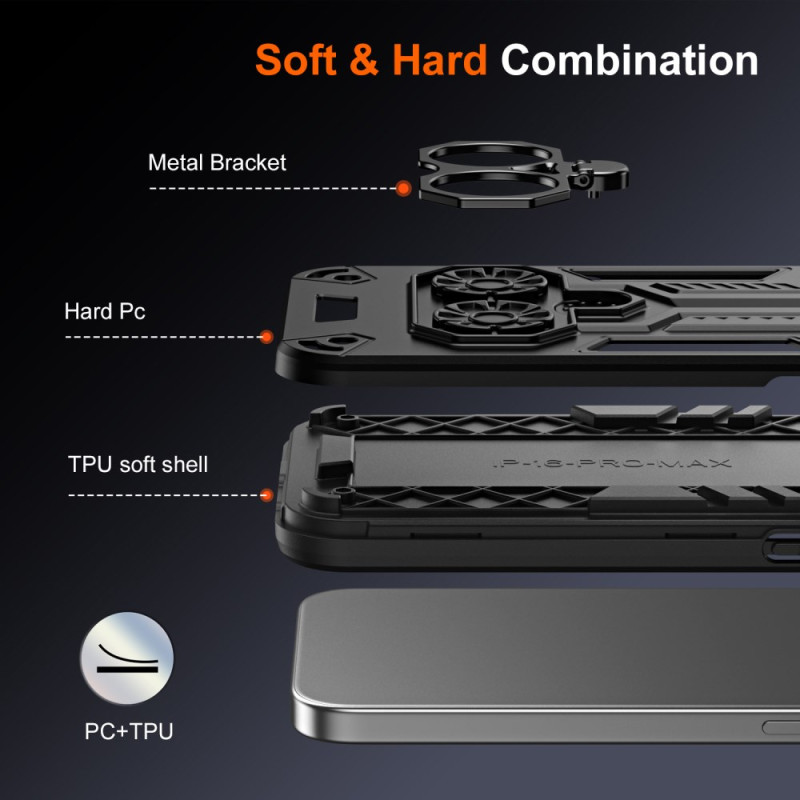 Ontdek onze robuuste en veelzijdige hoes voor iPhone 15 Pro Max. Hij is gemaakt van hybride PC- en TPU-materialen en biedt volledige bescherming tegen stoten en krassen. Dankzij de roterende ringsteun en verstelbare kickstand kun je handsfree videobellen, gamen of streamen.