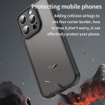 Ontdek onze hybride beschermhoes voor iPhone 15 Pro Max. De combinatie van zacht TPU en hard PC biedt volledige bescherming zonder afbreuk te doen aan stijl. Met luchtkussentjes in de hoeken, geïntegreerde knoppen en een mat doorschijnend ontwerp combineert deze hoes veiligheid en esthetiek voor je toestel.