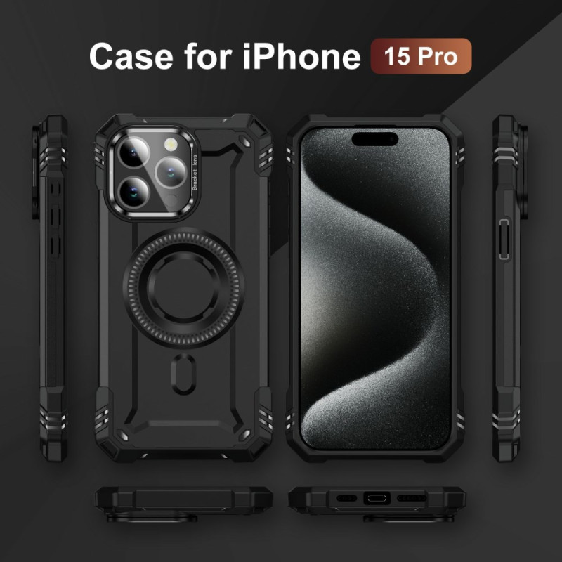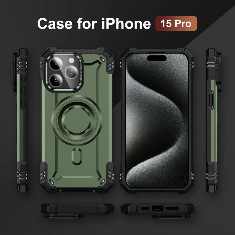 Ontdek onze robuuste magnetische hoes voor iPhone 15 Pro, die militaire bescherming combineert met innovatieve functies. Met een verstelbare kickstand, versterkte camerabescherming en compatibiliteit met MagSafe-accessoires biedt deze hoes een optimale gebruikerservaring en maximale bescherming voor je apparaat.