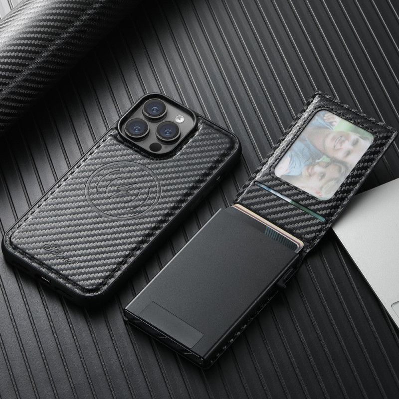 Ontdek het iPhone 15 Pro hoesje, dat stijl en functionaliteit combineert. De stijlvolle carbon textuur en het afneembare 2-in-1 ontwerp bieden volledige bescherming en praktische opbergruimte voor je pasjes. Geniet van een geïntegreerde houder, eenvoudige toegang tot pasjes en compatibiliteit met MagSafe draadloos opladen. Ideaal voor veelzijdig dagelijks gebruik.