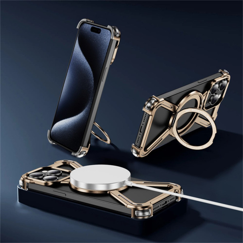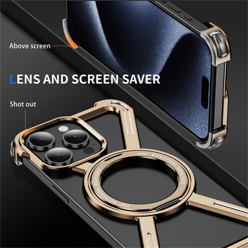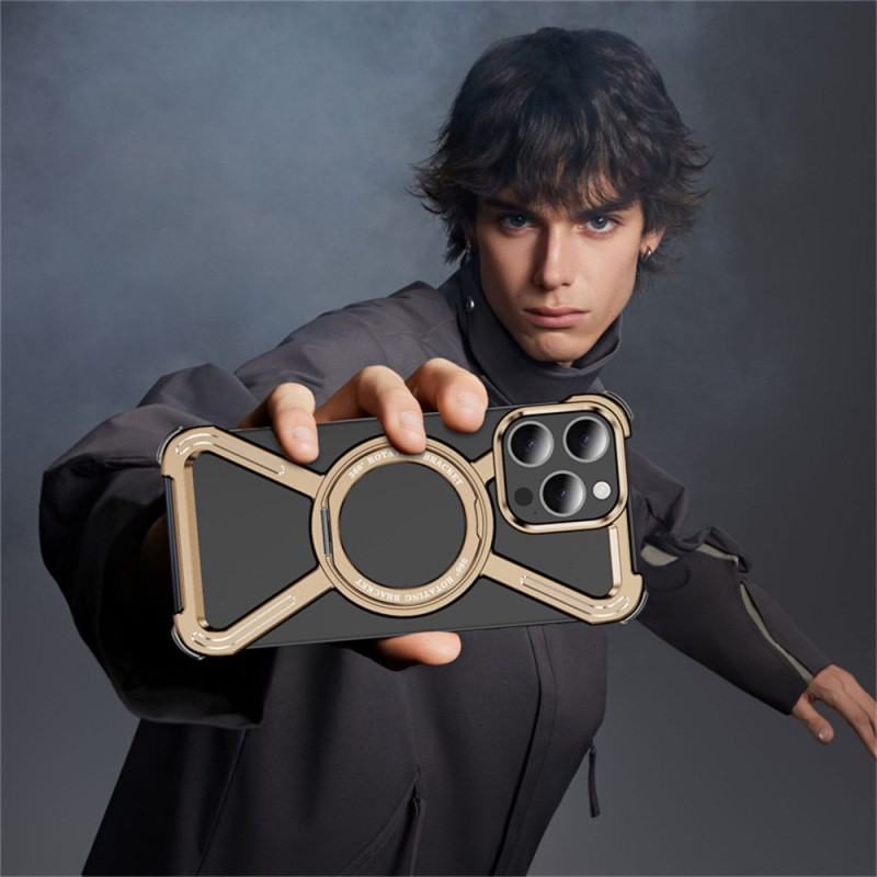 Ontdek onze innovatieve hoes voor iPhone 15 Pro. Hij is gemaakt van slijtvast metaal en biedt uitzonderlijke bescherming tegen stoten en vallen. De 360° roterende houder maakt handsfree kijken eenvoudig. Deze hoes is compatibel met magnetische bevestigingen en MagSafe opladen en combineert functionaliteit en stijl voor je apparaat.