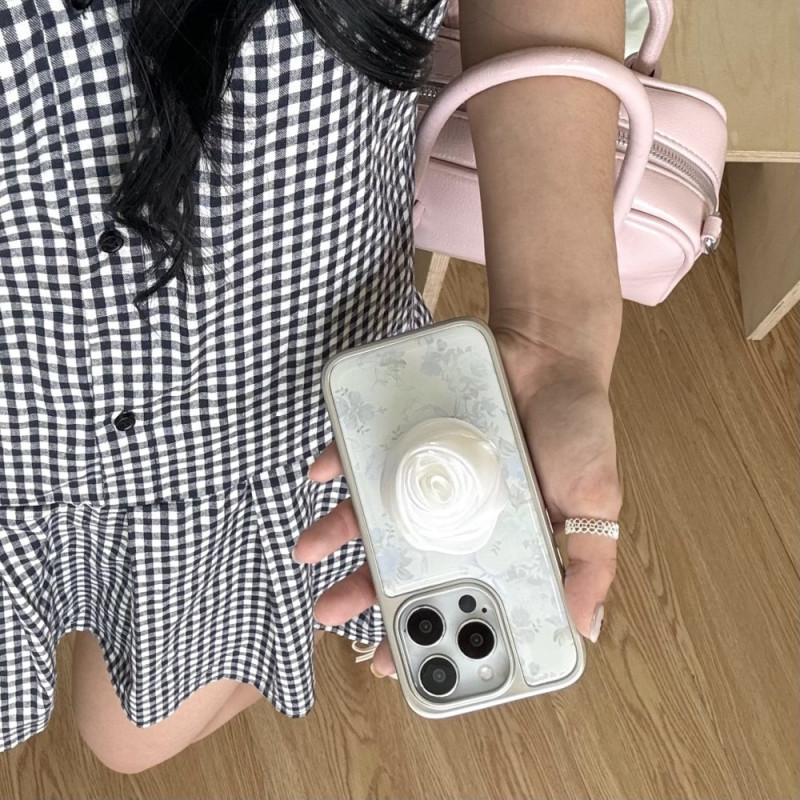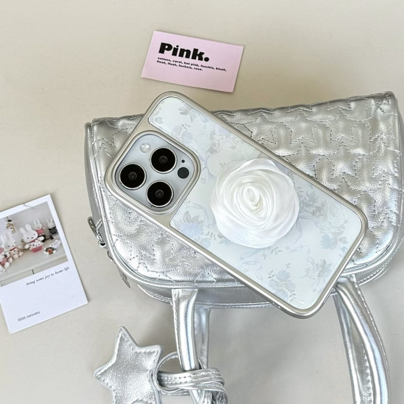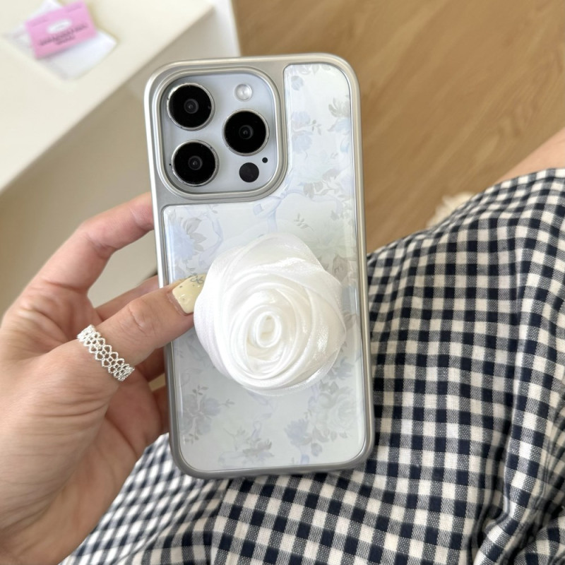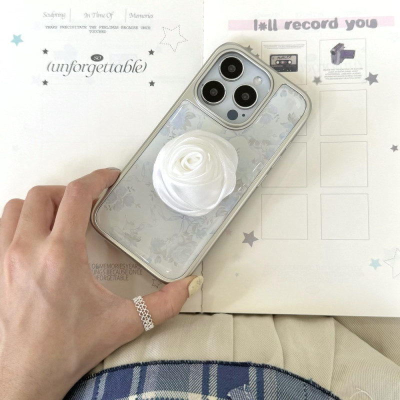 Ontdek onze elegante case voor iPhone 15 Pro, die stijl en bescherming combineert. Het zachtblauwe bloemmotief onder een glanzende epoxylaag, versierd met een 3D cameliabedeltje van satijnlint, zorgt voor een romantische en verfijnde touch. Het zilveren gegalvaniseerde frame versterkt niet alleen de esthetische aantrekkingskracht, maar ook de duurzaamheid. Gemaakt van hoogwaardig hard plastic, biedt deze hoes uitstekende schokabsorptie en langdurige bescherming.