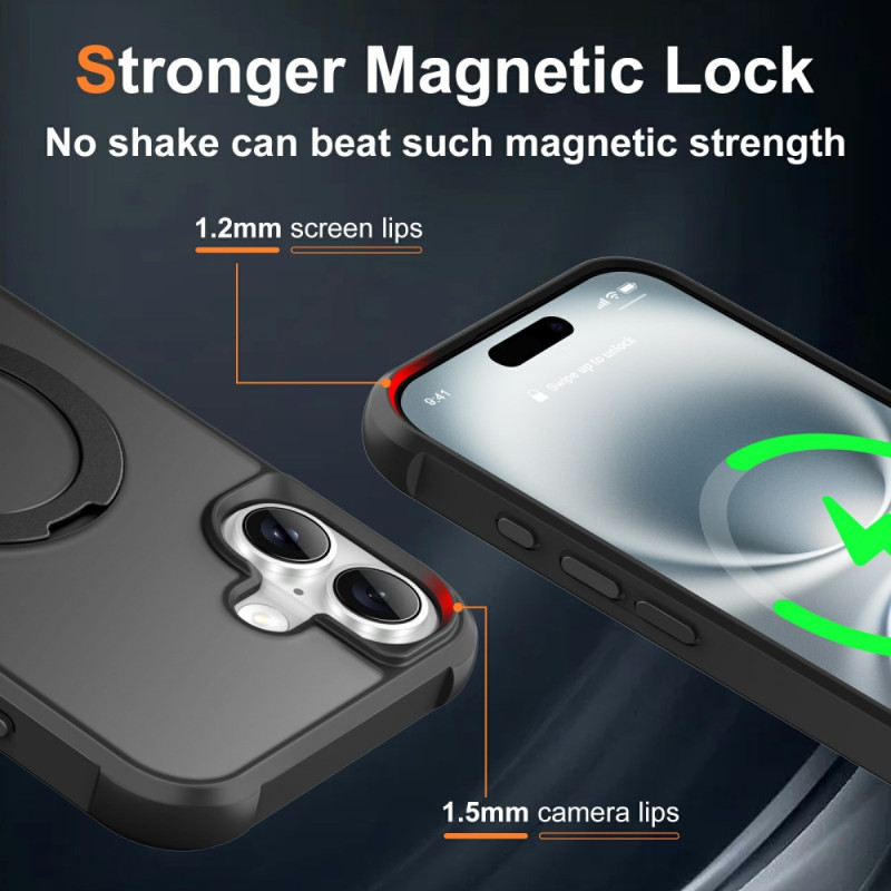 Ontdek onze eersteklas beschermhoes voor iPhone 16 Plus. Met een praktische roterende houder en MagSafe-compatibiliteit biedt hij optimale bescherming tegen stoten en vallen. Het innovatieve ontwerp bevat een stoffilter voor de speaker