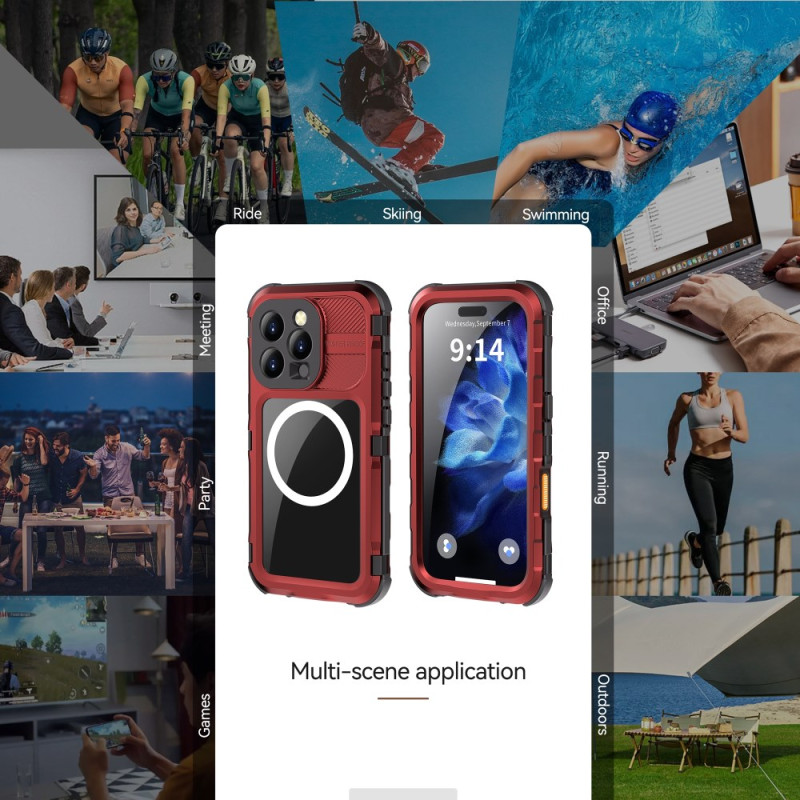 Ontdek de SHELLBOX M Series waterdichte hoes voor iPhone 16 Pro. Met zijn IP68-certificering biedt hij optimale bescherming tegen water, stof en schokken.