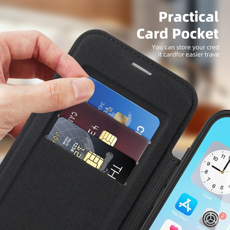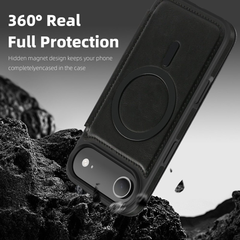 Combineer verfijnde stijl met geavanceerde beveiliging met deze bruine PU lederen iPhone Air hoes, compatibel met MagSafe. Het sobere, elegante ontwerp bevat krachtige magneten voor soepel en stabiel draadloos opladen, terwijl de slanke lijnen van je smartphone behouden blijven. Met praktische kaartsleuven en geïntegreerde RFID-technologie beschermt het je persoonlijke gegevens tegen onbevoegde scans. Met opstaande randen om het scherm en de camera te beveiligen, biedt hij volledige bescherming voor dagelijks gebruik.