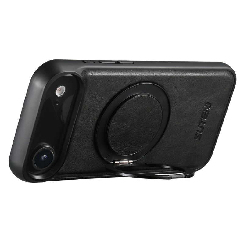 Deze SUTENI case voor de iPhone Air is gemaakt van PU leer met een gewaxte textuur die zowel chique als duurzaam is. Hij is ontworpen om lang mee te gaan en biedt effectieve bescherming tegen krassen, stof en alledaagse stoten, terwijl hij een comfortabele grip biedt. De geïntegreerde magnetische ring garandeert volledige compatibiliteit met MagSafe voor snel en stabiel opladen en met magnetische accessoires. De discrete en praktische 360° draaibare standaard laat je handsfree genieten van je video's en gesprekken, zonder afbreuk te doen aan de elegante stijl van de hoes.