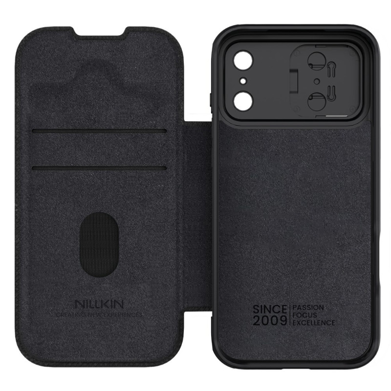 De NILLKIN Qin Pro Series case voor iPhone 17 Pro Max belichaamt de perfecte balans tussen elegantie en bescherming. Bedekt met verfijnd PU leer en versterkt door een hybride PC + TPU structuur, biedt het een nobele look terwijl het bestand is tegen alledaagse schokken, krassen en vuil. De schuifklep biedt effectieve bescherming voor fotolenzen, terwijl de speciale kaart- en stylussleuven uniek praktisch zijn. Hij is dun en licht, past perfect bij de lijnen van je smartphone zonder hem te belasten en combineert een eersteklas stijl met intelligente functies voor professioneel en persoonlijk gebruik.