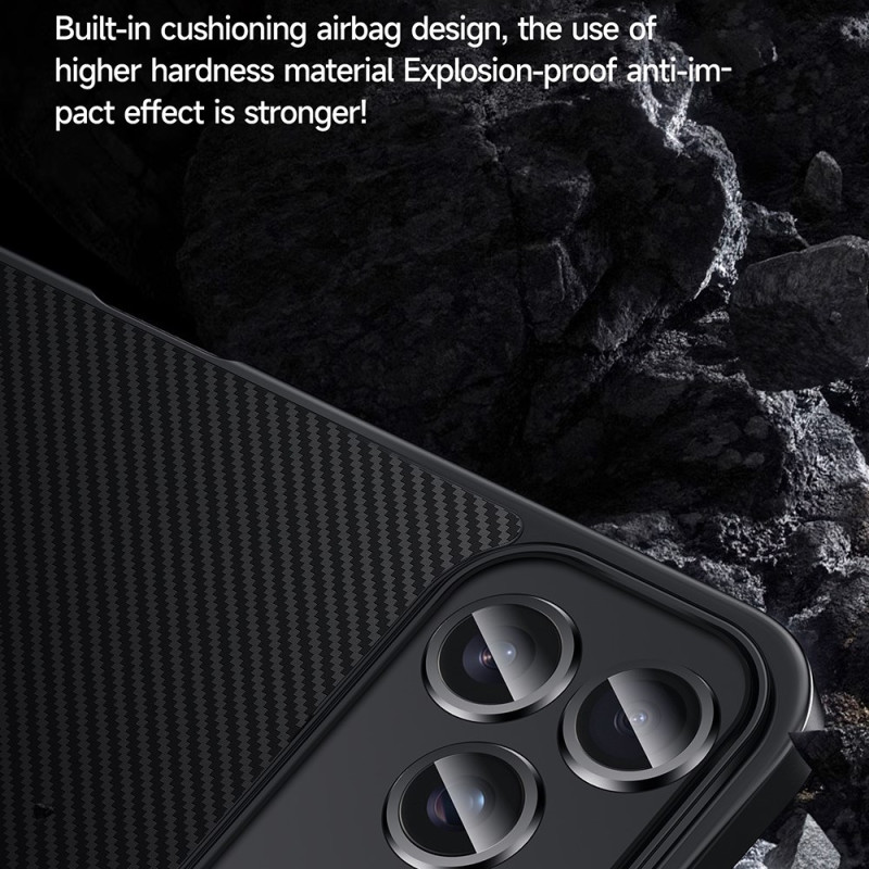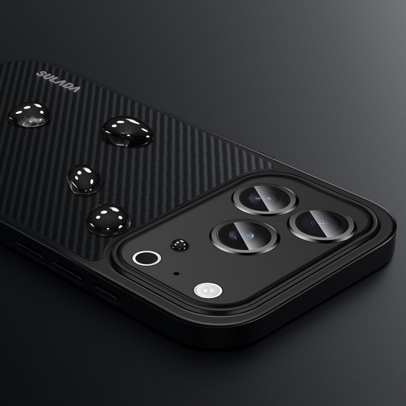 De SULADA case voor iPhone 17 Pro Max combineert een verfijnd design met maximale veiligheid. Hij is gemaakt van TPU met een PU-coating met carbontextuur en heeft een metalen frame en metalen knoppen die een premium touch toevoegen en de stevigheid vergroten. Het waterafstotende, lotusbladachtige oppervlak is bestand tegen vlekken en vet en blijft dus brandschoon. Dankzij de geïntegreerde magnetische ring is hij compatibel met MagSafe en magnetische bevestigingen, zodat hij goed op zijn plaats blijft zitten. Met interne airbags, versterkte randen en intelligente schokverdeling biedt hij effectieve bescherming tegen stoten voor je smartphone.