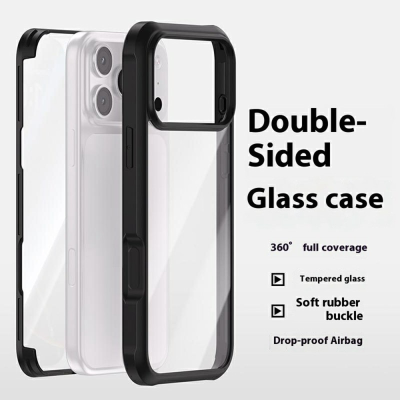 Deze dubbelzijdige hoes van 9H gehard glas, siliconen en TPU is ontworpen om elegantie en robuustheid te combineren en biedt volledige bescherming voor de iPhone 17 Pro Max. Dankzij het magnetische ontwerp kan hij direct worden geplaatst en opnieuw worden gebruikt zonder gereedschap of vervelende aanpassingen. Het zeer transparante glas benadrukt de originele kleur van de telefoon, terwijl de oleofobe en waterafstotende coating alles schoon en streeploos houdt. Het is compatibel met draadloos opladen en biedt militaire bescherming tegen schokken, terwijl het slanke, comfortabele ontwerp behouden blijft.