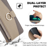 Il dispose d'une coque intérieure en TPU souple, de 3 emplacements pour cartes et d'un compartiment pour l'argent, d'une poche à fermeture éclair pour un rangement supplémentaire, peut agir comme un support pour votre téléphone, et est doté d'un anneau pour le doigt pour une prise facile.