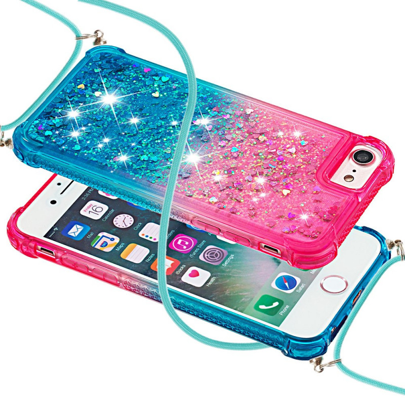 De Glitter Cord Case, ontworpen in siliconen, is perfect voor uw iPhone SE 3 / SE 2 / 8 / 7.