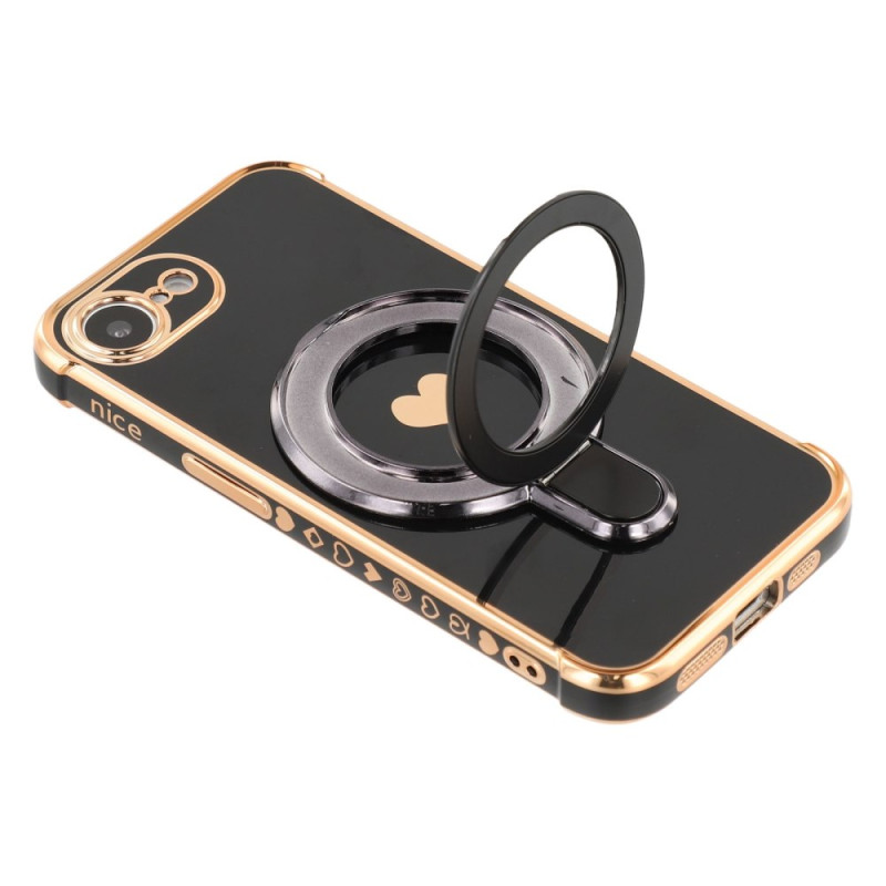 Het unieke ontwerp met hartmotief en gegalvaniseerde afwerking voegt een vleugje luxe toe. Dankzij de geïntegreerde kickstand kun je handsfree video's kijken of bellen.