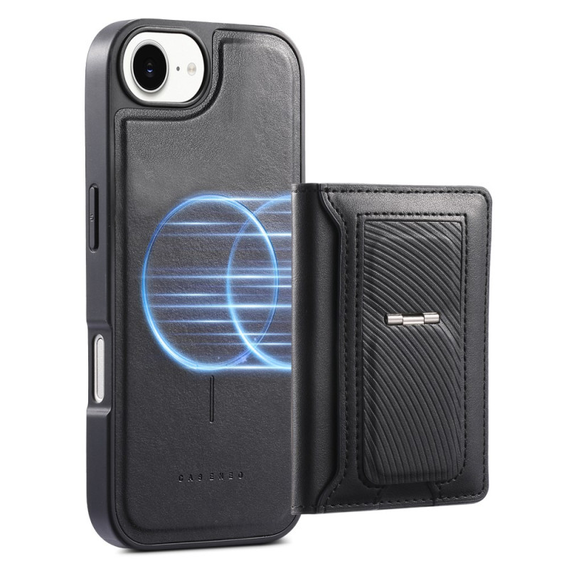 Coque multifonctionnelle pour iPhone 17e/16e avec porte-cartes magnétique amovible et support intégré. Compatible MagSafe pour une utilisation optimale avec tous vos accessoires magnétiques. Protection complète et design pratique pour le quotidien.
