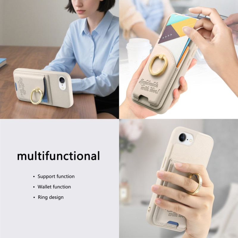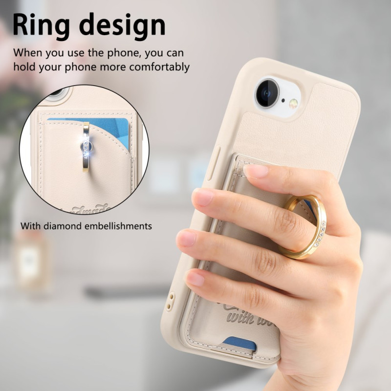 Protégez votre iPhone 17E / 16E avec élégance grâce à cette coque multifonction en cuir PU. Elle intègre un porte-carte pratique, un anneau rotatif à 360° orné de strass servant de support et de prise ergonomique, pour allier style et fonctionnalité au quotidien.
