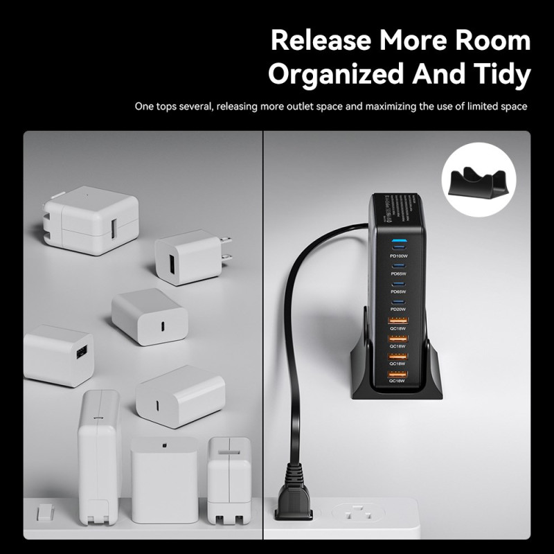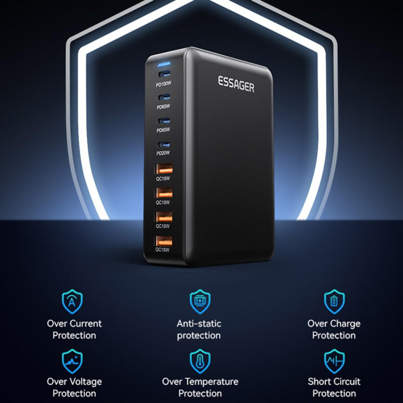 Découvrez la puissance ultime avec ce chargeur de bureau GaN 320W offrant 8 ports de charge simultanés (4 USB-C + 4 USB-A). Technologie GaN avancée pour un format compact et des performances exceptionnelles. Port USB-C principal jusqu'à 100W pour charger rapidement vos appareils les plus exigeants.