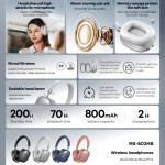 Ga helemaal op in een meeslepende geluidservaring met de roze REMAX draadloze hoofdtelefoon. Met Bluetooth 5.4-technologie zorgt hij voor een snelle, stabiele verbinding met al je apparaten. De 40 mm unit levert rijk hifi-geluid, perfect voor muziek, gesprekken of video's. Geniet van een indrukwekkende batterijlevensduur tot 70 uur onafgebroken afspelen. Lichtgewicht en comfortabel, met kussentjes van traagschuim, zodat je hem gemakkelijk de hele dag kunt dragen. Veelzijdig, ondersteunt afspelen via Bluetooth, TF-kaart of 3,5 mm audiokabel.