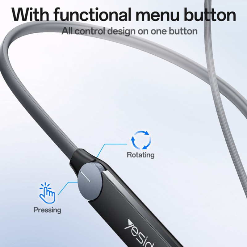 De YESIDO YSP30 oortelefoon met nekband heeft een lichtgewicht, ergonomisch ontwerp uit één stuk voor comfortabel, langdurig dragen. Bluetooth 5.4 connectiviteit, gecombineerd met de energiezuinige AB5656D chip, zorgt voor een stabiele en energiezuinige verbinding. 13 mm vergulde drivers leveren meeslepend, nauwkeurig geluid. De draaiknop biedt intuïtieve bediening van volume en afspelen. De 350 mAh batterij biedt meer dan vijfendertig uur autonomie, ideaal voor zowel professionals als reizigers.