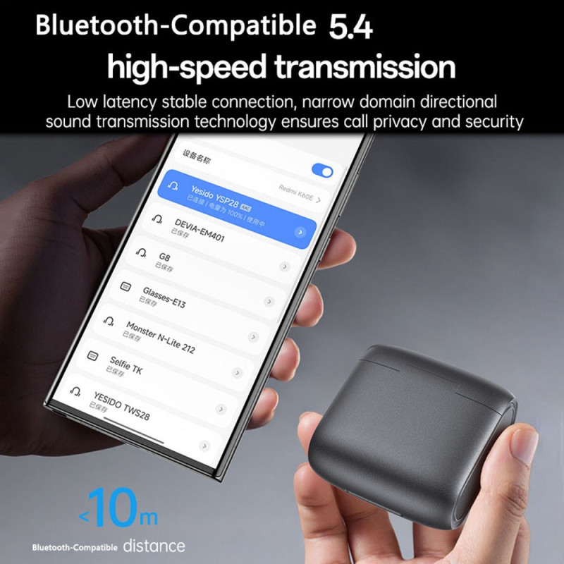 De YESIDO YSP28 oortelefoon heeft een open ontwerp dat professioneel en sportief gebruik combineert en comfortabel luisteren biedt zonder in het oor te hoeven steken. ENC ruisonderdrukking, geleverd door een unieke microfoon, zorgt voor duidelijkere gesprekken door omgevingsgeluiden te beperken. De driver met titanium diafragma van 12 mm levert nauwkeurig hifi-geluid. De vormherstellende haken passen zich op natuurlijke wijze aan de lichaamsvorm van de gebruiker aan. De batterij gaat tot zes uur mee, aangevuld met een oplaadhouder van 450 mAh, terwijl de hoogwaardige afwerking de duurzaamheid en esthetiek van het product verbetert.