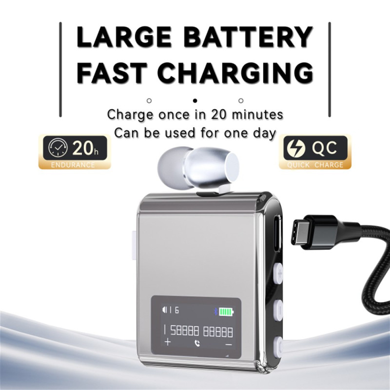Deze K89 Bluetooth headset heeft een LCD-scherm dat in één oogopslag beller-ID, afspeelstatus, tracknavigatie en batterijniveau weergeeft. Dankzij de snellaadfunctie kun je tot twintig uur bellen na slechts twintig minuten opladen. ENC ruisonderdrukking zorgt voor heldere, stabiele communicatie. Gelijktijdige verbinding met twee telefoons maakt multitasking eenvoudig, terwijl trilalarmen, gesproken mededelingen en camera-assistentie het dagelijks gebruik uitbreiden. Het clip-on ontwerp zorgt voor een stevige grip onderweg.