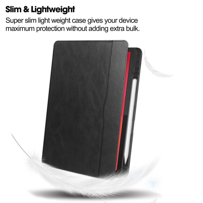 Bescherm je tablet in stijl met deze multifunctionele hoes van eersteklas PU-leer. Hij is voorzien van een praktische inklapbare standaard, kaartsleuven, een pennenhouder en een automatische wekkerfunctie om de batterij te sparen.