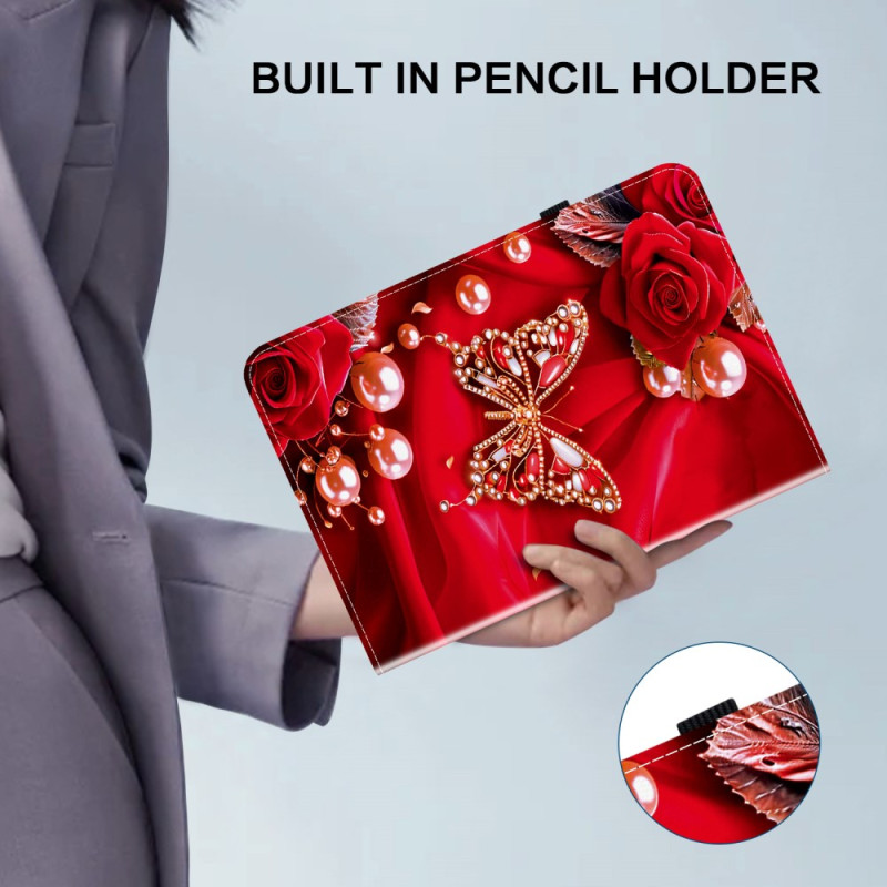 Bescherm je Lenovo Tab M11 / K11 (11") - TB330 / TB331 stijlvol met deze geraffineerde hoes met parelroze vlindermotief. Met een praktische uitklapbare standaard, geïntegreerde kaarthouders en een pennenlus combineert hij stijl en functionaliteit voor dagelijks gebruik.