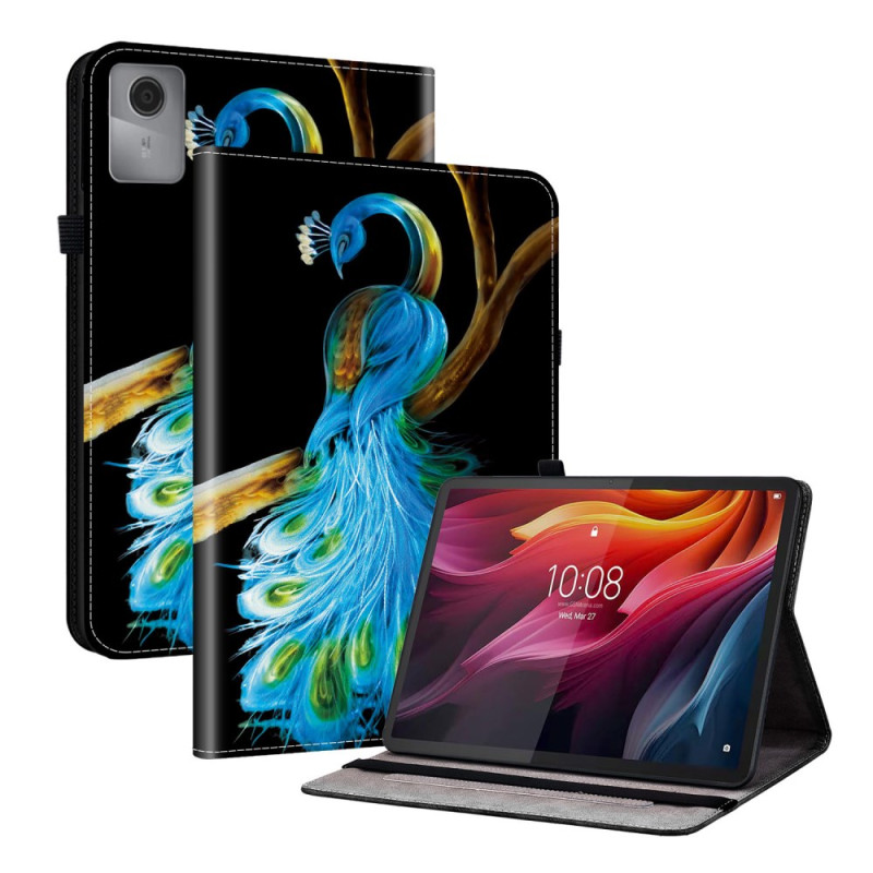 Bescherm je Lenovo Tab M11 / K11 (11") - TB330 in stijl met deze elegante hoes met een geraffineerd pauwendesign. Voorzien van een handige inklapbare standaard voor handsfree kijken, geïntegreerde kaartsleuven en een styluslus. Veilige elastische sluiting.