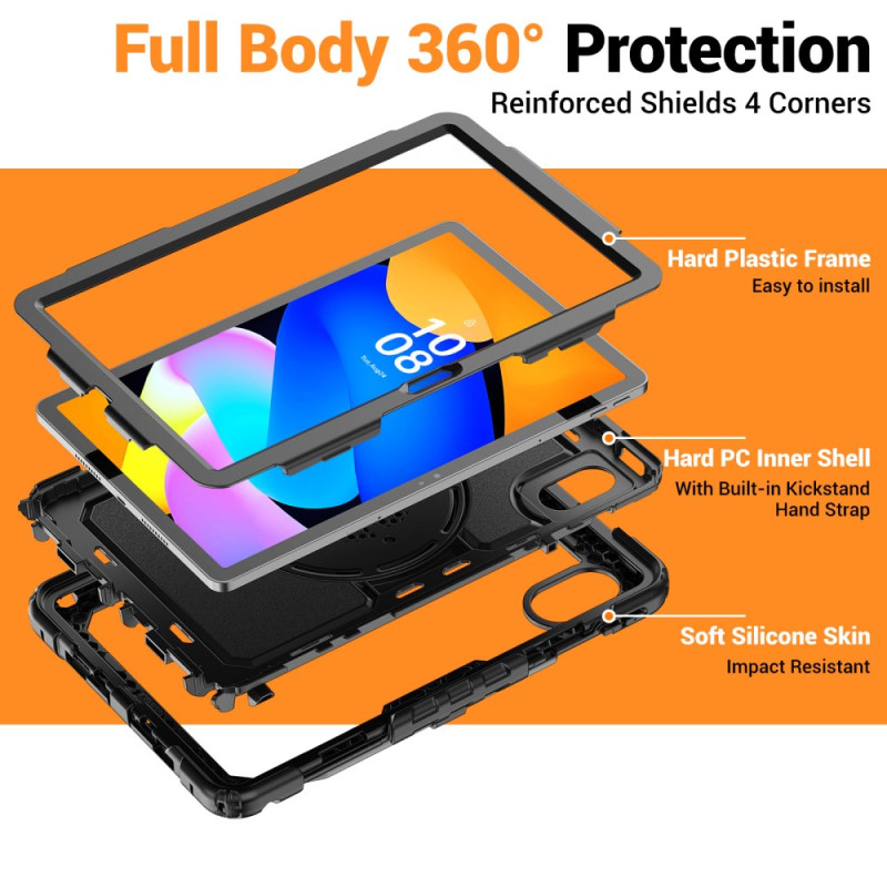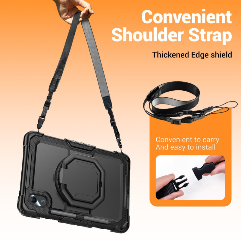 Bescherm je Lenovo Tab M11 / K11 (11") - TB330 tablet met deze robuuste hoes die pc en siliconen combineert. Met een 360° draaibare kickstand, een pennenhouder en een verstelbare schouderriem biedt hij maximale bescherming en gebruiksgemak voor dagelijks gebruik.