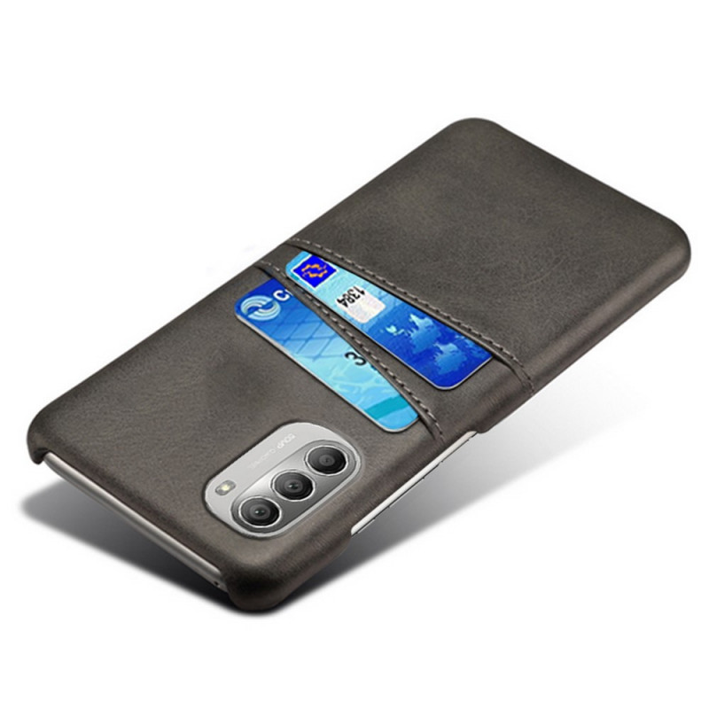 Protégez de façon sécuritaire et pratique votre Moto G51 5G avec cette coque en simili cuir munie de porte-cartes.
