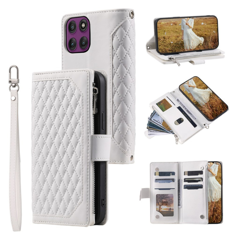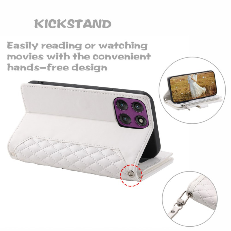 Ontdek onze elegante PU lederen wallet case voor de Motorola Moto G56 5G. Met zijn gestikte ruitvormige ontwerp, meerdere functies en volledige bescherming combineert dit accessoire stijl en functionaliteit voor je smartphone. Profiteer van de praktische opbergvakken, geïntegreerde houder en veilige magnetische sluiting.