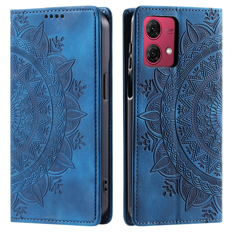 Ontdek onze Mandala hoes met suède-effect voor de Motorola Moto G84 5G, ontworpen om dubbellaagse bescherming te bieden.