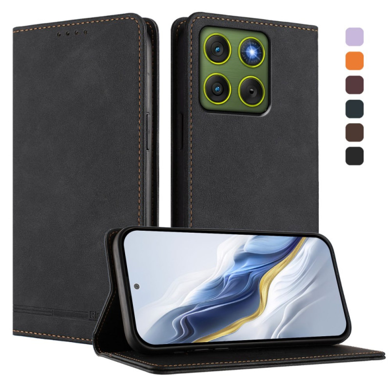 Étui portefeuille élégant en cuir PU pour Motorola Edge 70 5G. Protégez vos cartes bancaires grâce à la technologie anti-RFID intégrée. Design pratique avec support intégré pour visionnage mains libres et compartiments pour cartes et espèces.