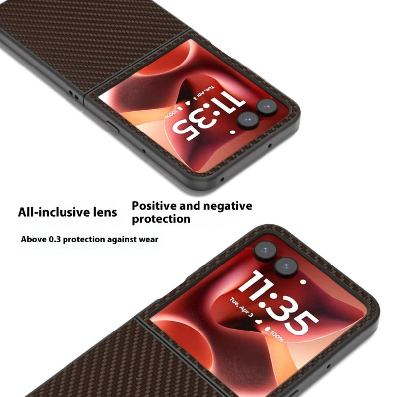 Ontdek onze elegante en beschermende hoes voor de Motorola Razr 60 Ultra 5G. Gemaakt van hoogwaardig PU leer en PC, biedt het duurzame bescherming tegen krassen en stoten. Het getextureerde koolstofvezelontwerp voegt een geraffineerde touch toe aan je apparaat. Het flexibele vouwontwerp houdt je...