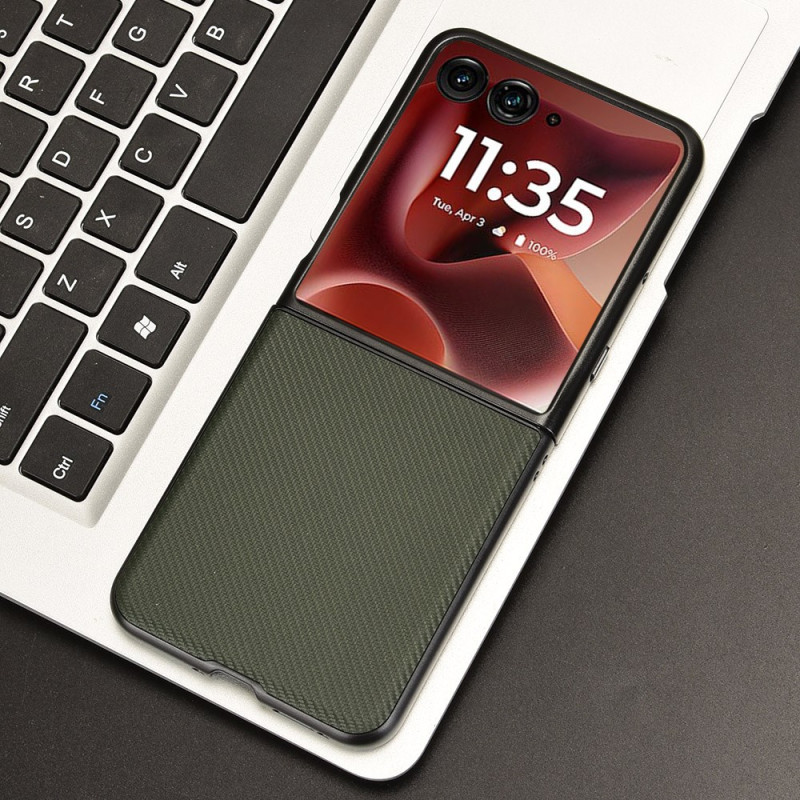 Ontdek onze hoogwaardige beschermhoes voor de Motorola Razr 60 Ultra 5G. Gemaakt van hoogwaardig PU leer en PC, biedt het uitzonderlijke duurzaamheid en optimale bescherming.