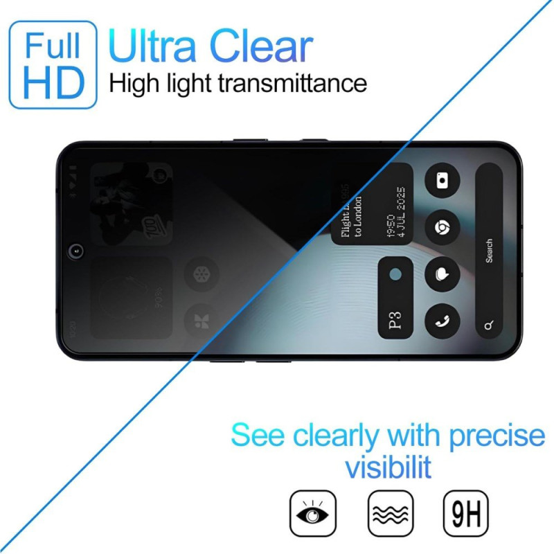 Ultrabestendig 9H+ gehard glas met 25-graden privacyfilter, antikrascoating en optimale aanraakgevoeligheid.