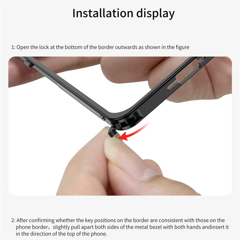 Het stevige metalen frame beschermt essentiële gebieden, terwijl het oorspronkelijke ontwerp van de smartphone zichtbaar blijft.